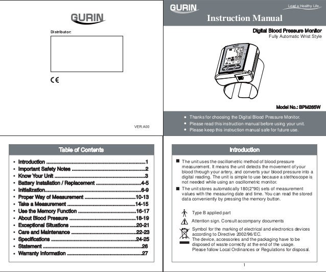 Blood Pressure Monitor Instruction Manual 2