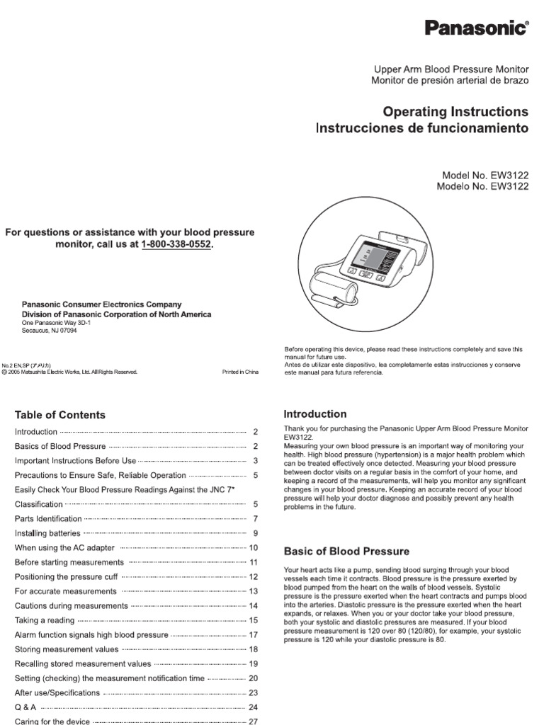 Panasonic Ew3122 Upper Arm Blood Pressure Monitor Operating